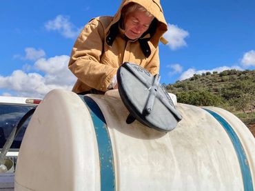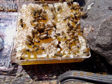 2. to fan the hive - we supply water from a drum on the truck bed via hose to the drum on the site with a float.. to moderate water level... Rock for landing pad...