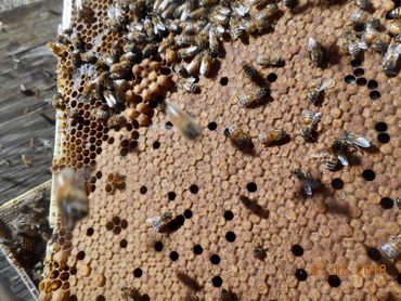 there is always much activity when introducing a new hive box/added 'floor' to their housing ~